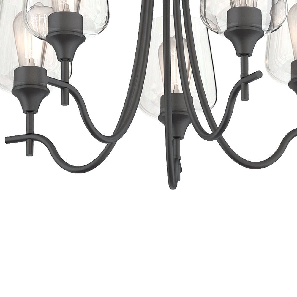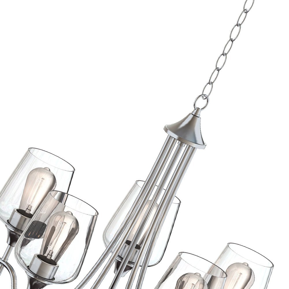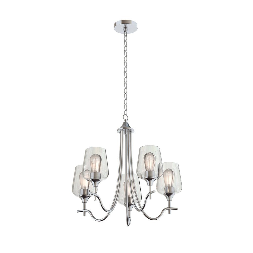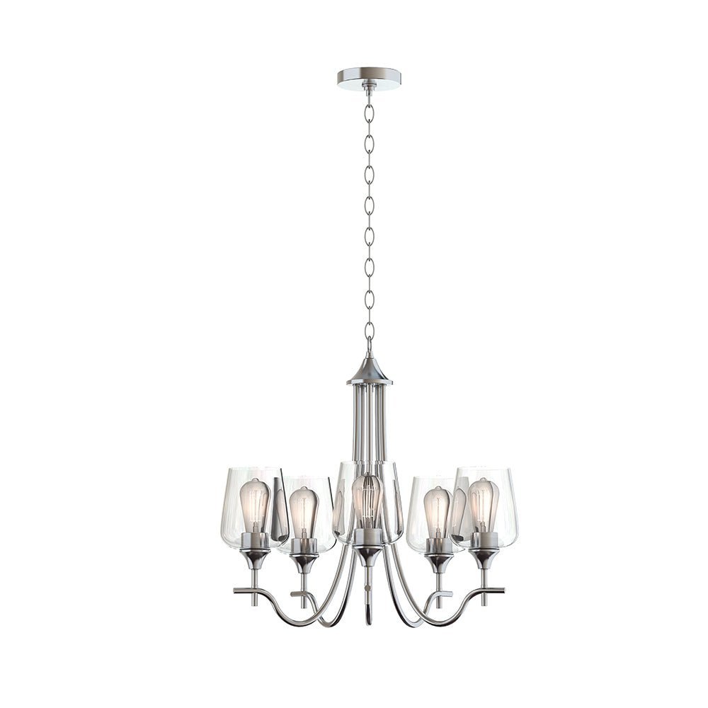 Exquisite and delicately crafted. this 5-light empire chandelier is the epitome of sophisticated luxury. This chandelier features five metal curved arms stretching upward to support five wine-glass-shaped shades made of clear glass. creating a candle-style silhouette. Paired with a sleek black and nickel finish. this chandelier ensures a captivating ambiance for an entryway. bedroom. dining room. living room. or kitchen island setting.