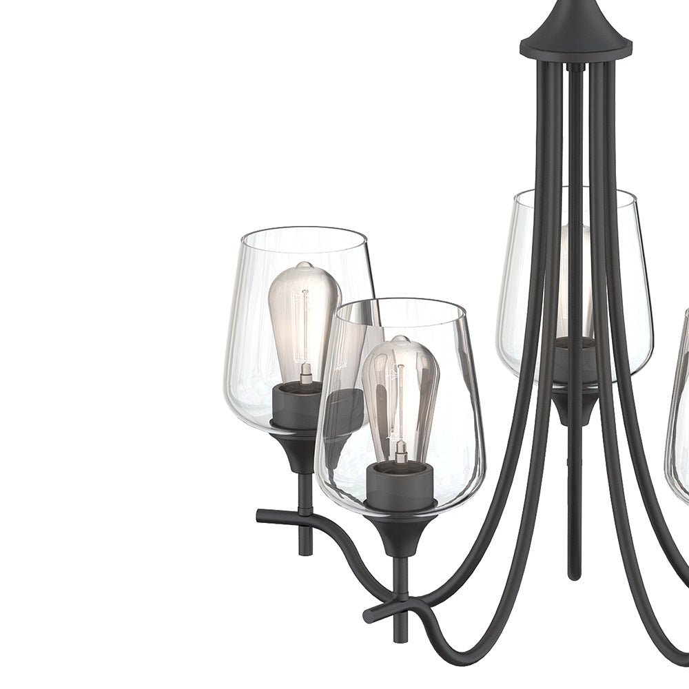 Five Lights • Clear Glass Shades • Empire Design • Curved Arms • Black/Nickel Finish • E26 Medium Bulbs (Not Included) •  Hardwired • UL Listed