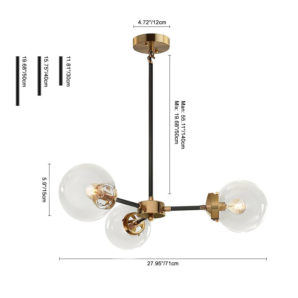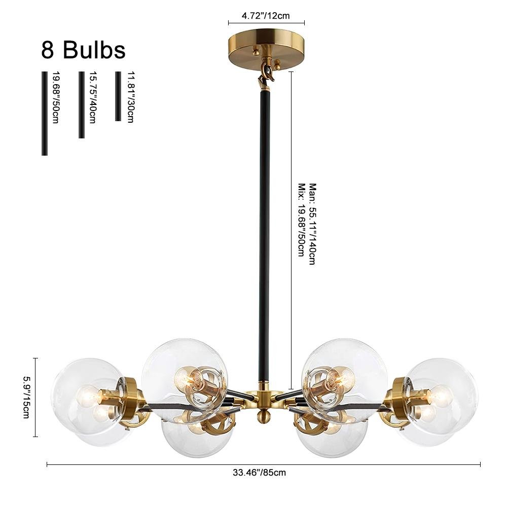 Three/Six/Eight Lights • Black and Brass Finish • Glass Globe Shades • E12/E14-base Bulbs (Not Included) • Adjustable Cables • Hardwired• UL Listed/CE Listed