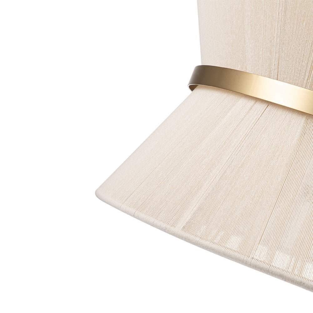 Two/Eight Lights • Drum Frame • Tiered Design • Beige Thread • Boho Style • Brass Finish • E12/E26 Bulbs (Not Included) • Hardwired • UL Listed
