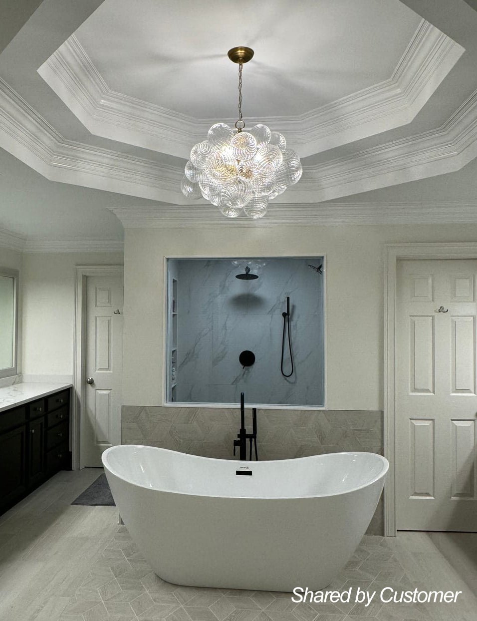 This chandelier is exactly what I was looking for! The bubble design is fun yet elegant, and it lights up the room beautifully. The brass finish gives it a luxurious touch. Excellent value for the price.