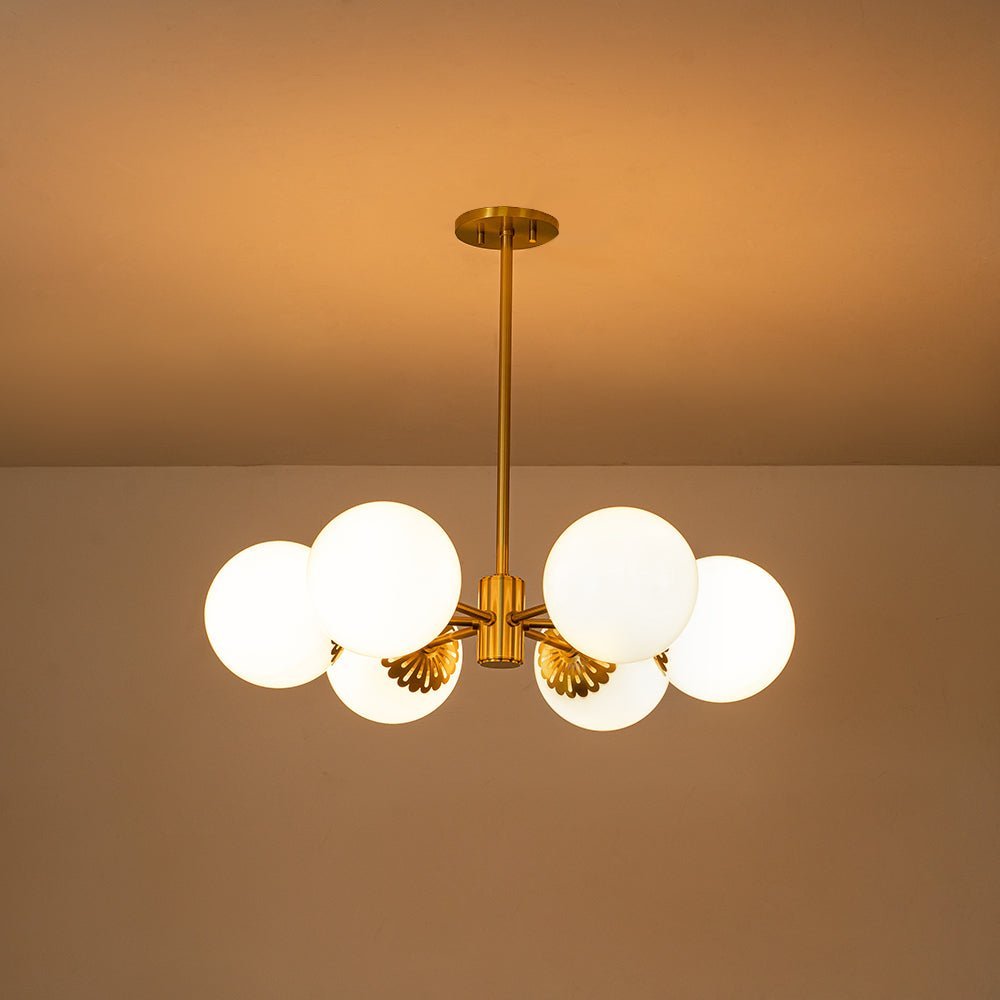 I was looking for something unique, and this chandelier exceeded my expectations. The daisy-like structure and opal globes are stunning, and the brass finish makes it feel high-end.