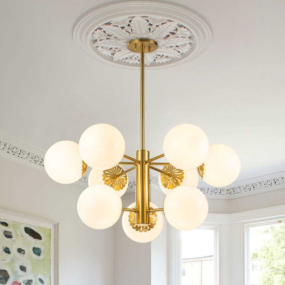 9 reviews for Brass Daisy Tiered Opal Glass Globe Sputnik Chandelier