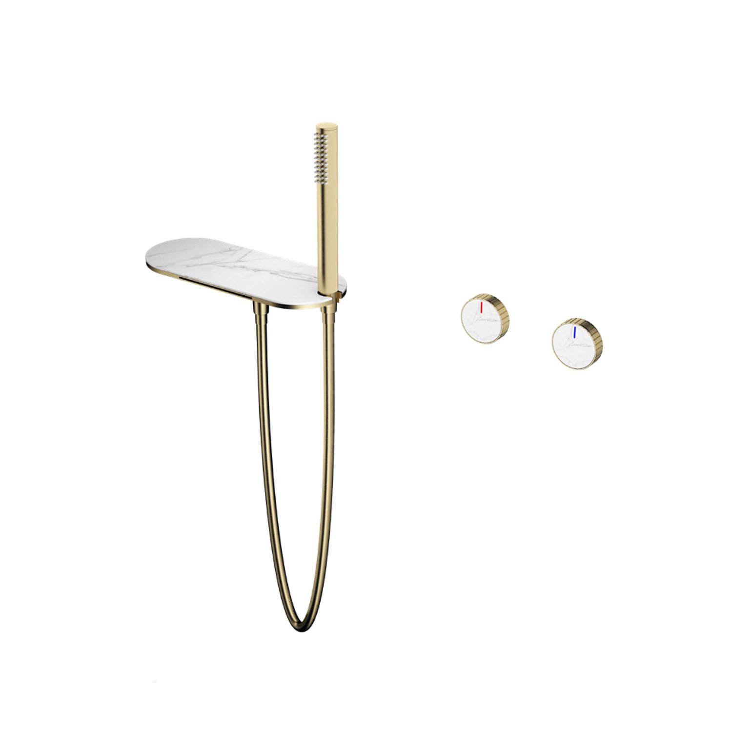 • Our bathtub faucet set uses a 1.5m shower hose to provide the bathroom with enough shower space and makes cleaning the tub after a shower easy. Place the hand shower on the adjustable shower stand and adjust the angle to enjoy a comfortable shower.
