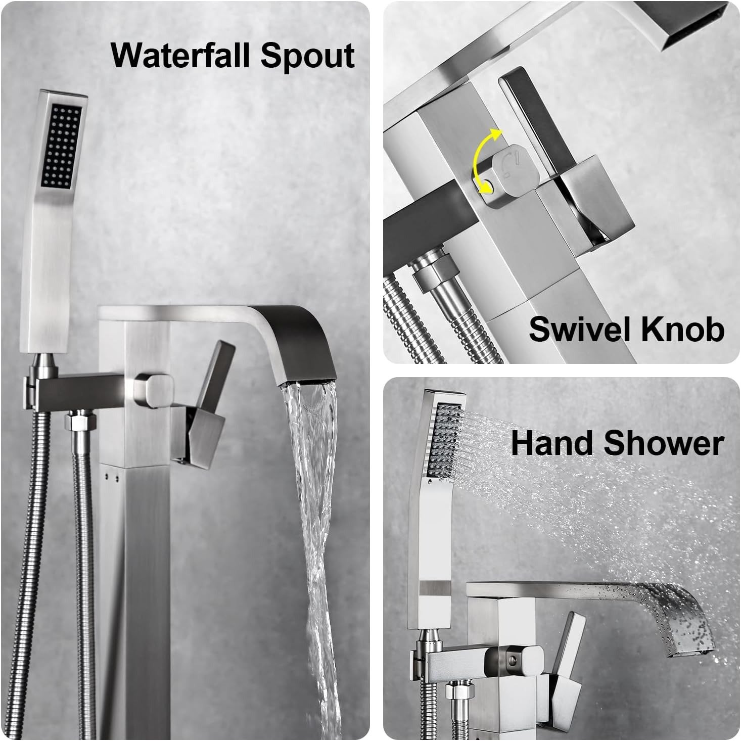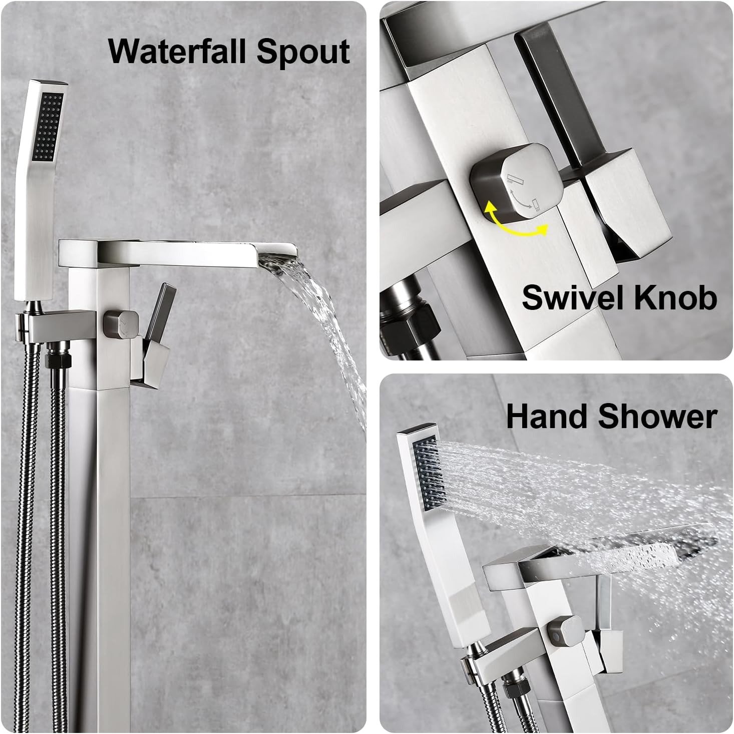 Stylish & Modern Design: The modern design of this floor mounted bathroom faucet is intended to subtly complement your contemporary bathroom, adding more elegance to your bathroom