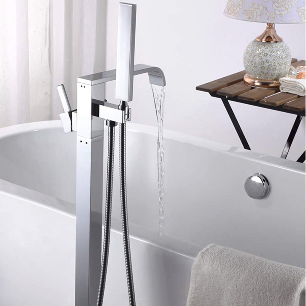 Freestanding Bathtub Faucet Tub Filler Floor Mount Bathroom Faucets Brass Single Handle with Hand Shower