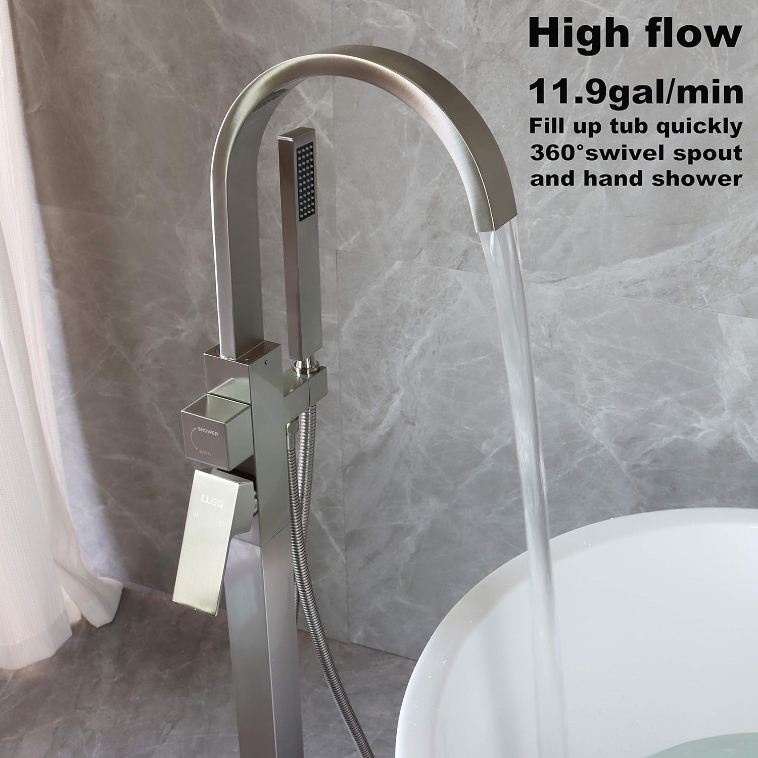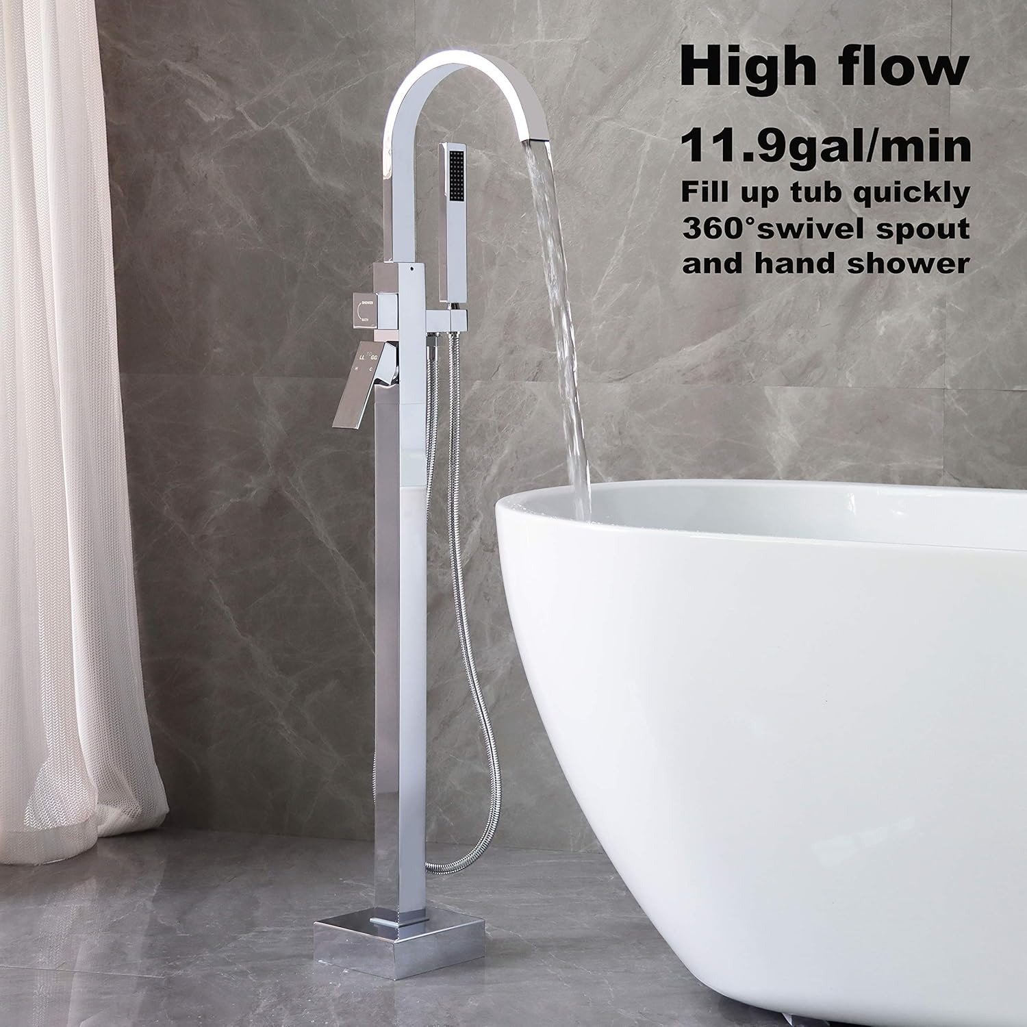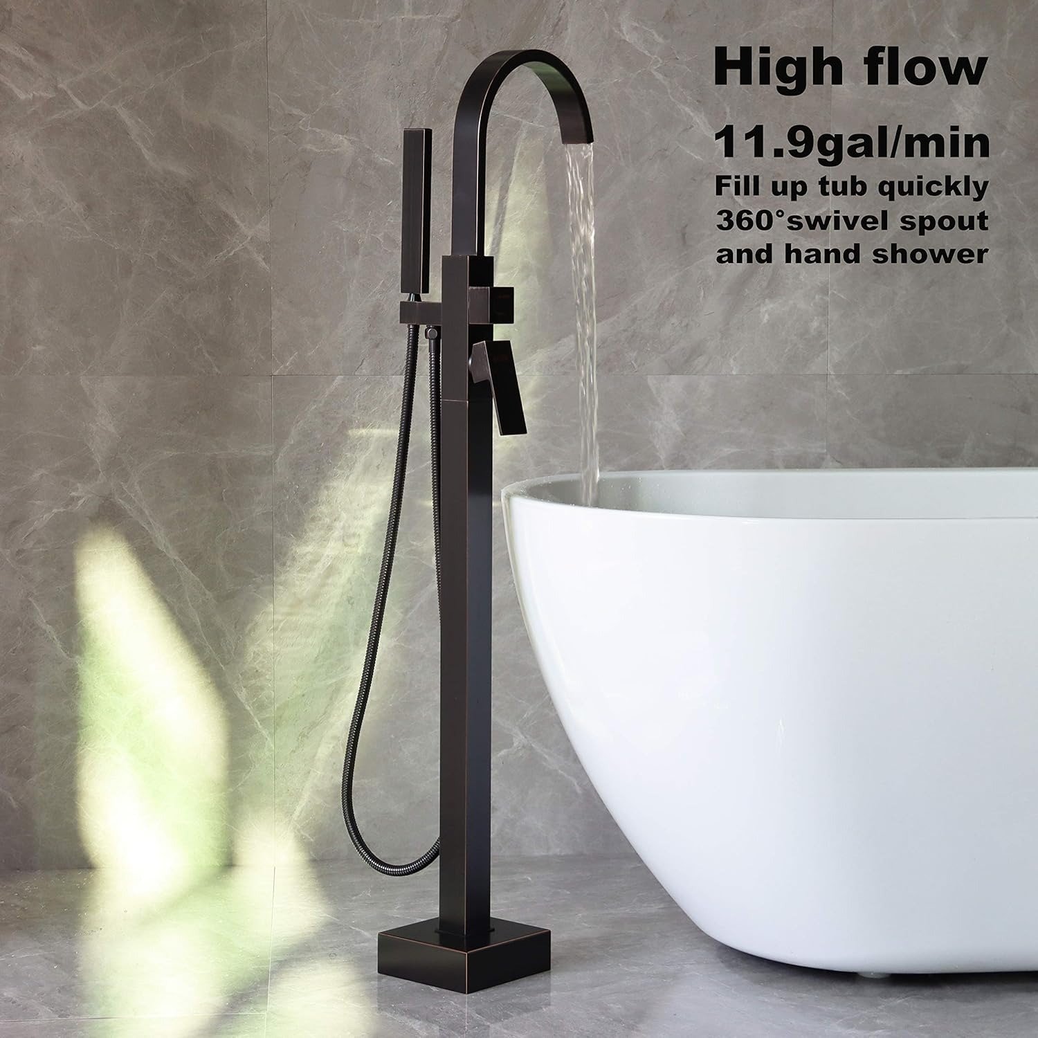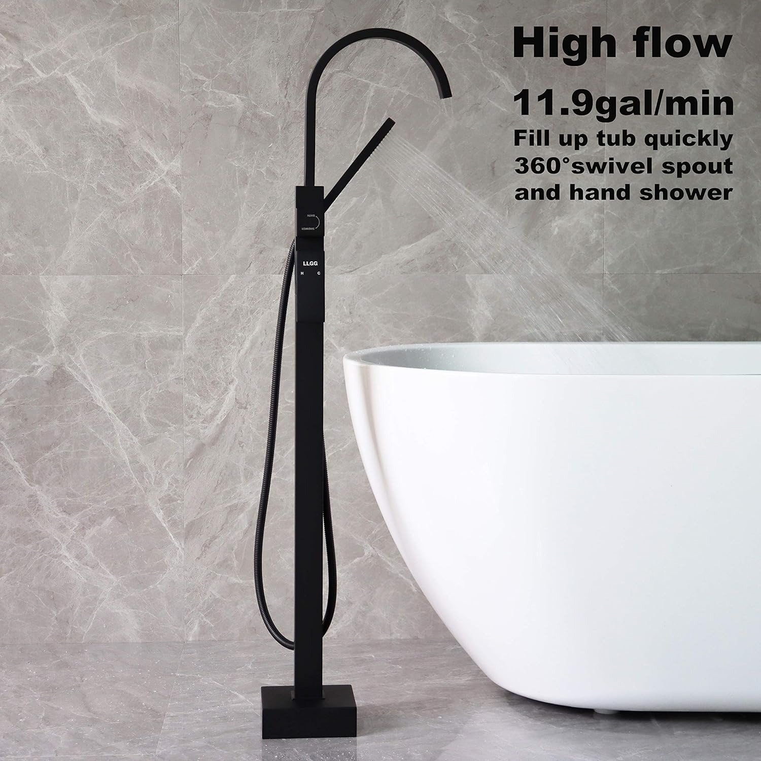 Freestanding Tub Faucets Black Bathtub Fillers Floor Mounted Mount Faucet Filler For Tubs Bathtubs High Flow 11.9GPM Bathroom With Handheld Shower