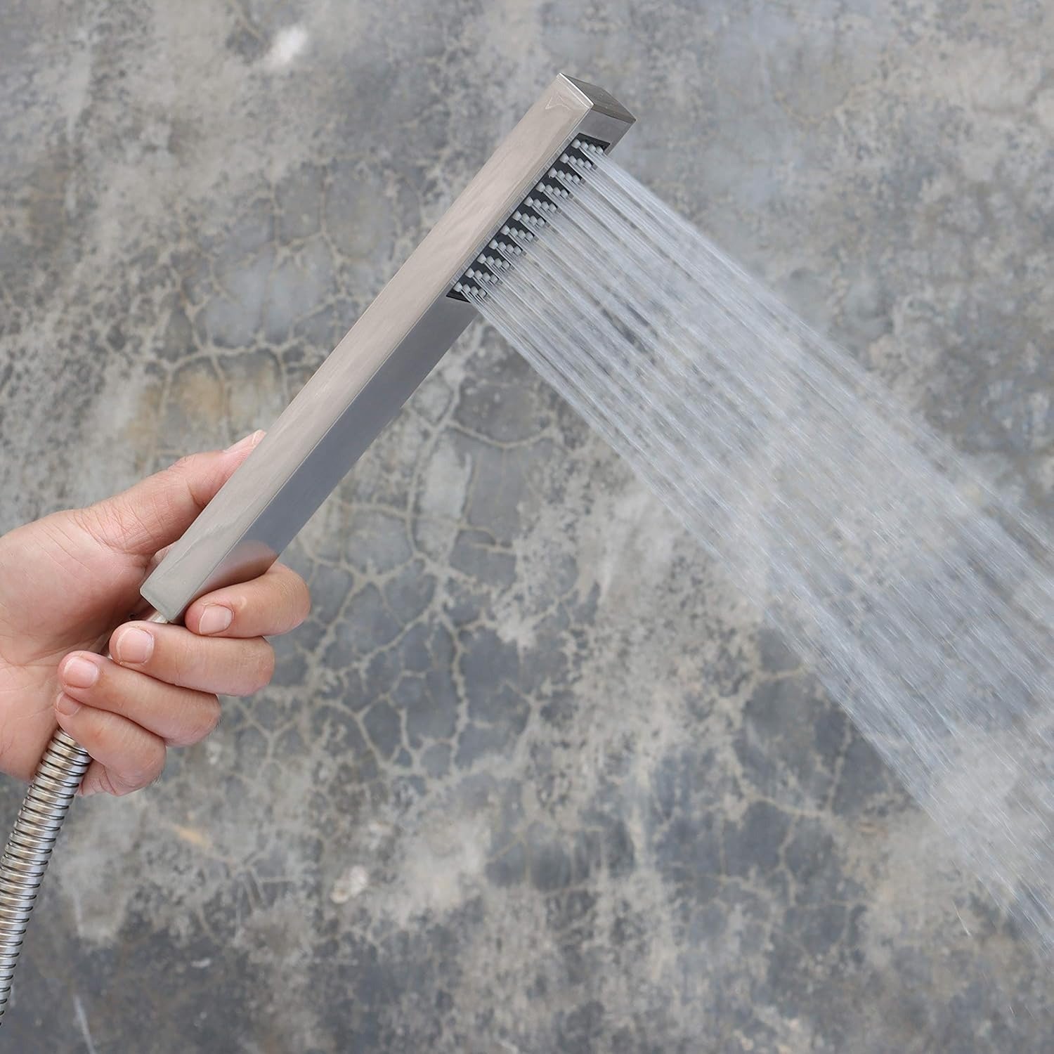 New design: Lean forward hand shower avoid leaking water from it dripping on the floor when you turn the faucet off.