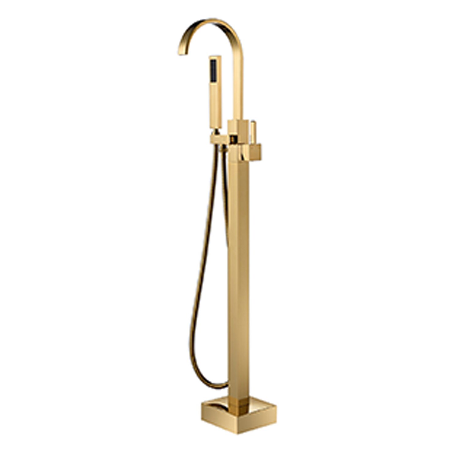 Electroplating bathtub side hot and cold bathtub faucet copper double rod vertical floor shower head set double handle a cross long handle