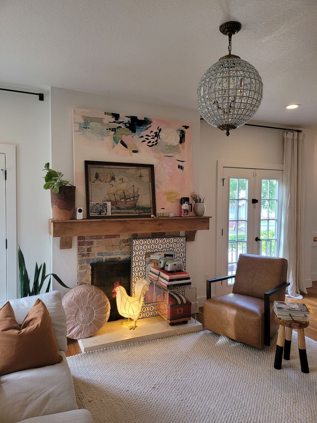 I couldn’t be happier with this chandelier! The antique brass finish pairs perfectly with the crystal globes, creating a beautiful vintage look. The light it gives off is warm and inviting.