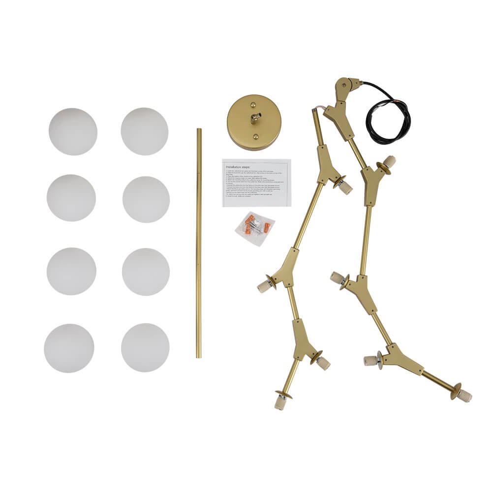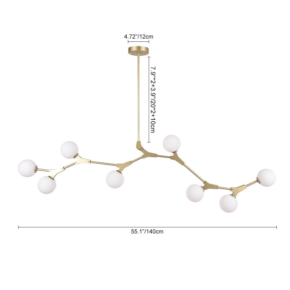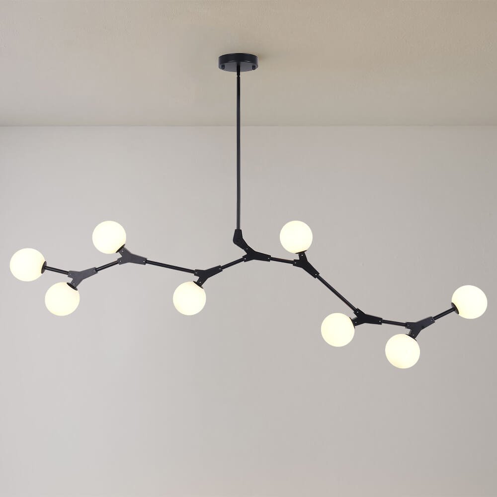 Transform a modern dining or living space with this chic and subtle branching bubble chandelier from artful glamours. Suspended by a round canopy and a slender pole. a curved linear frame supporting eight milky globe shades looks like a zigzag tree-like branch ornamented by cute cotton balls in a delicate design. With eight 5W bulbs (not included) sitting inside of the opal glass shades. this linear chandelier showcases a romantic and cozy aura while lighting. Available in two colors of metals. the black finish rounds out your interior into a handsome minimalist style as the brass finish adds an understated luxury touch. Thanks to the adjustable pole. this mid-century linear island chandelier applies to both high and low ceilings. No matter hung above the dining table and kitchen island or decorated in the living room and bedroom. this graceful island branching bubble chandelier will never disappoint us.