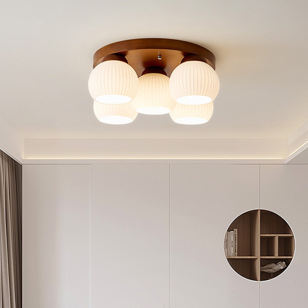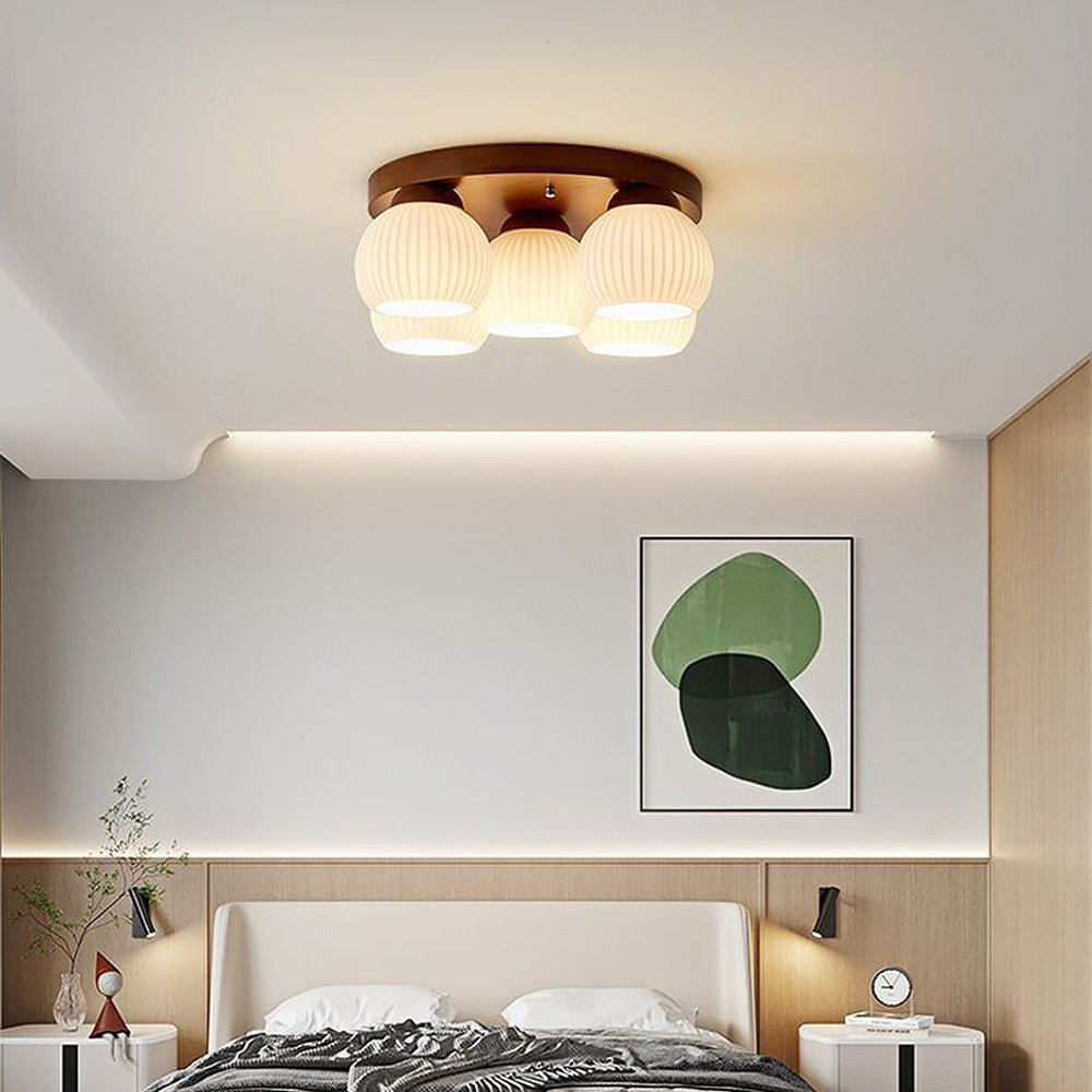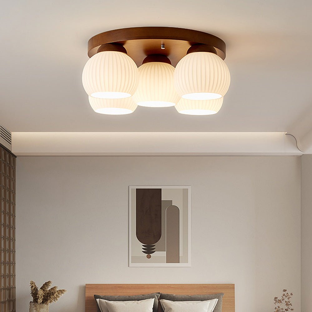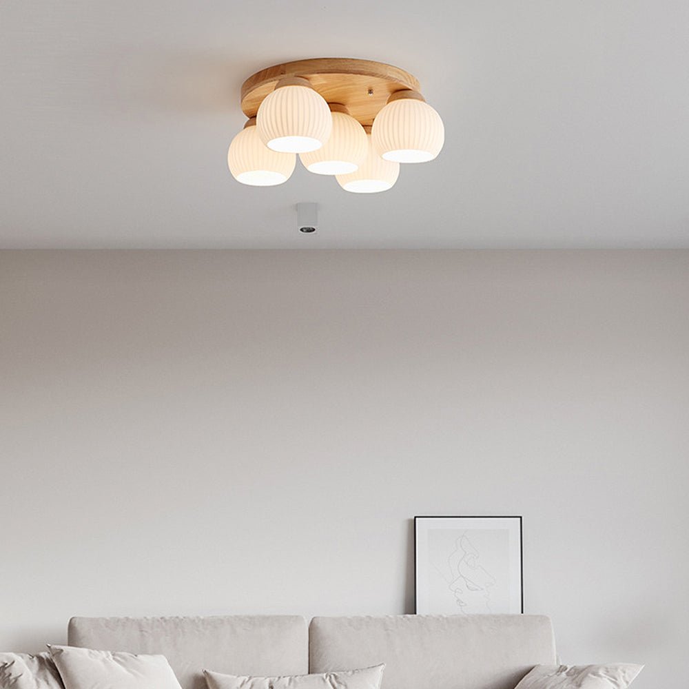 Minimalist Wood Multi-Heads White Ceiling Light