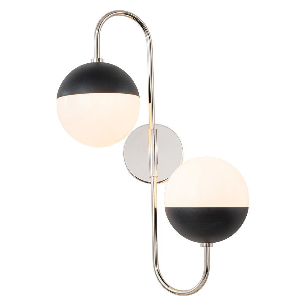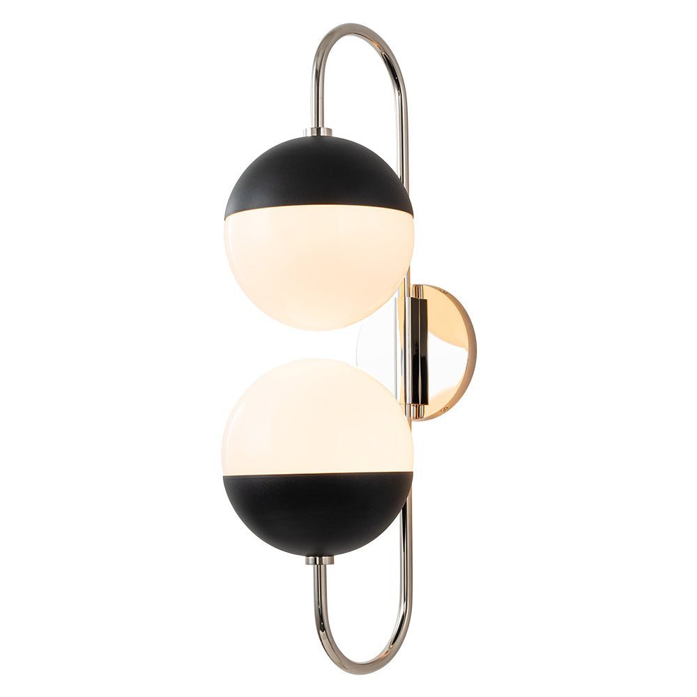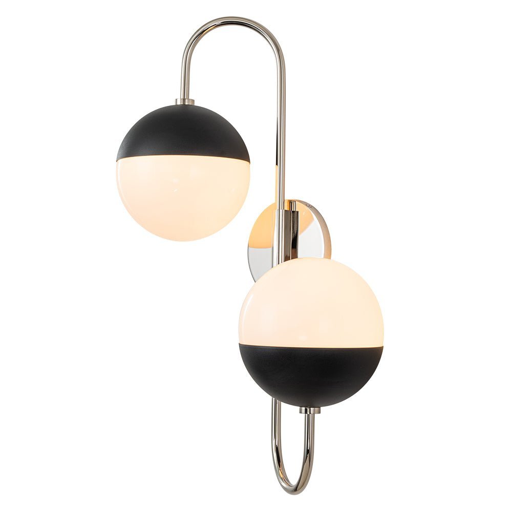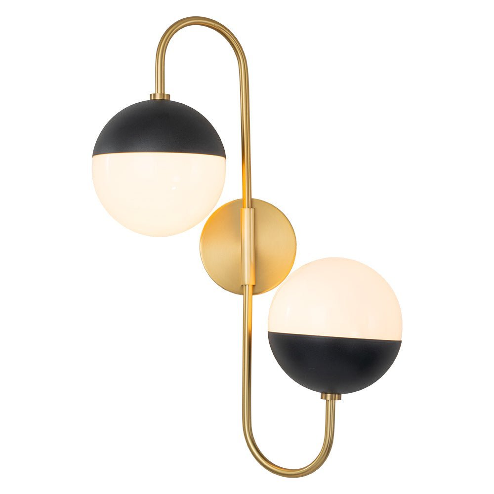 Exquisite and elegant. this 2-light globe wall lamp features double goose arms up and down supporting two opal glass globes highlighted with satin black dome holders. The adjustable goose arm design allows you to swing both lights to either side for focus lighting to where you require more brightness. Create a brilliantly warm ambiance to enrich your bedroom. dining room. entryway. living room. or foyer with this modern mid-century 2-light goose arm globe wall sconce.CL4114