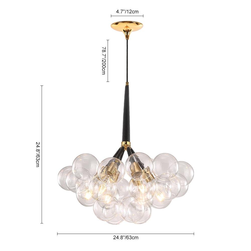 As a perfect pick for creating a visual focal point while brightening up your space. this glass bubble chandelier looks like an inverted bunch of glass balloons floating in the air whimsically. A sturdy metal rod with several arms that support a cluster of spherical glass shades downwards showcases from the cluster chandelier. Four or six 6W LED G125 bulb offer a boost of brightness while adding fantasy ambiance. As a source of light and inspiration for your daily life. this glass bubble chandelier is a gorgeous addition to the living room. dining room. hall. and entryway.