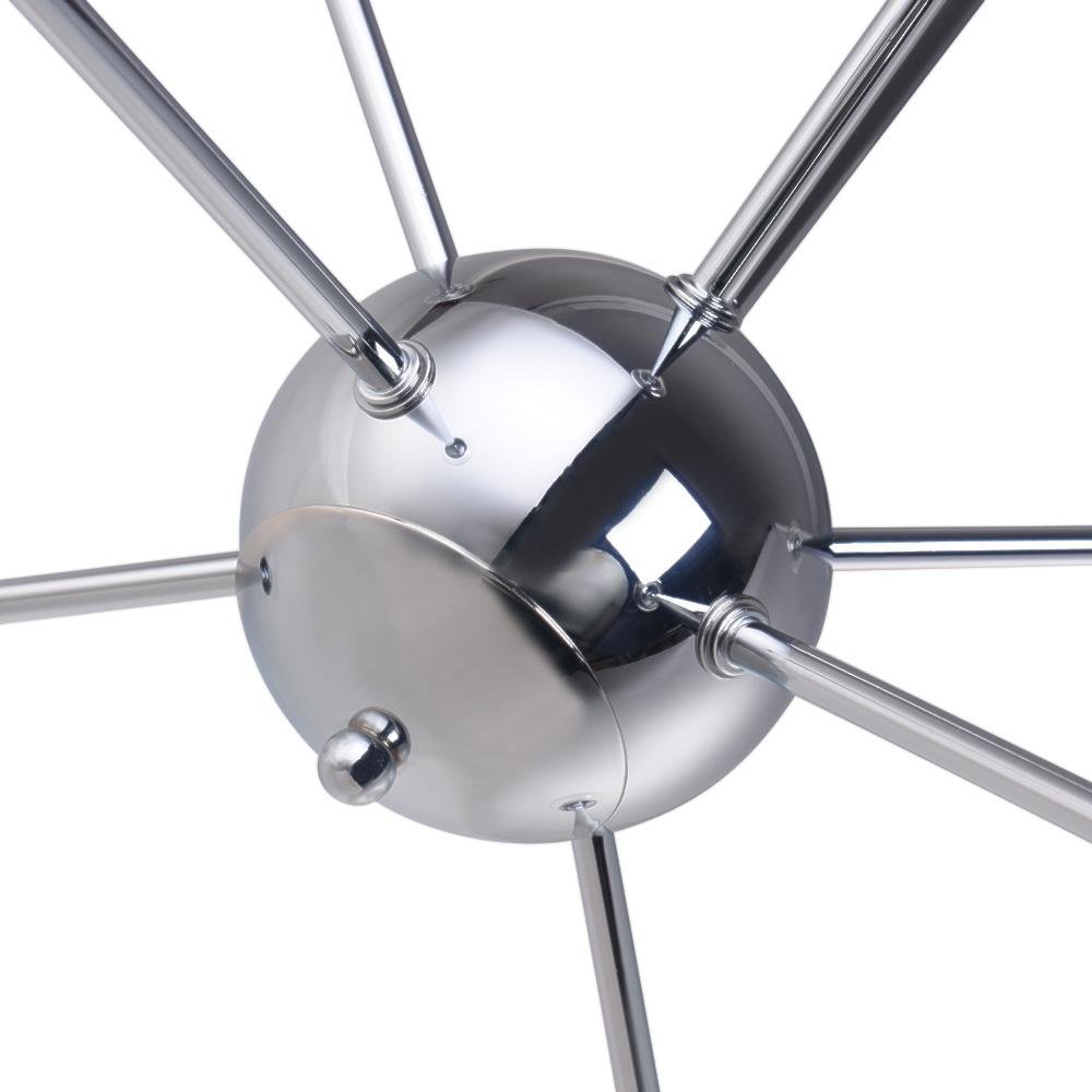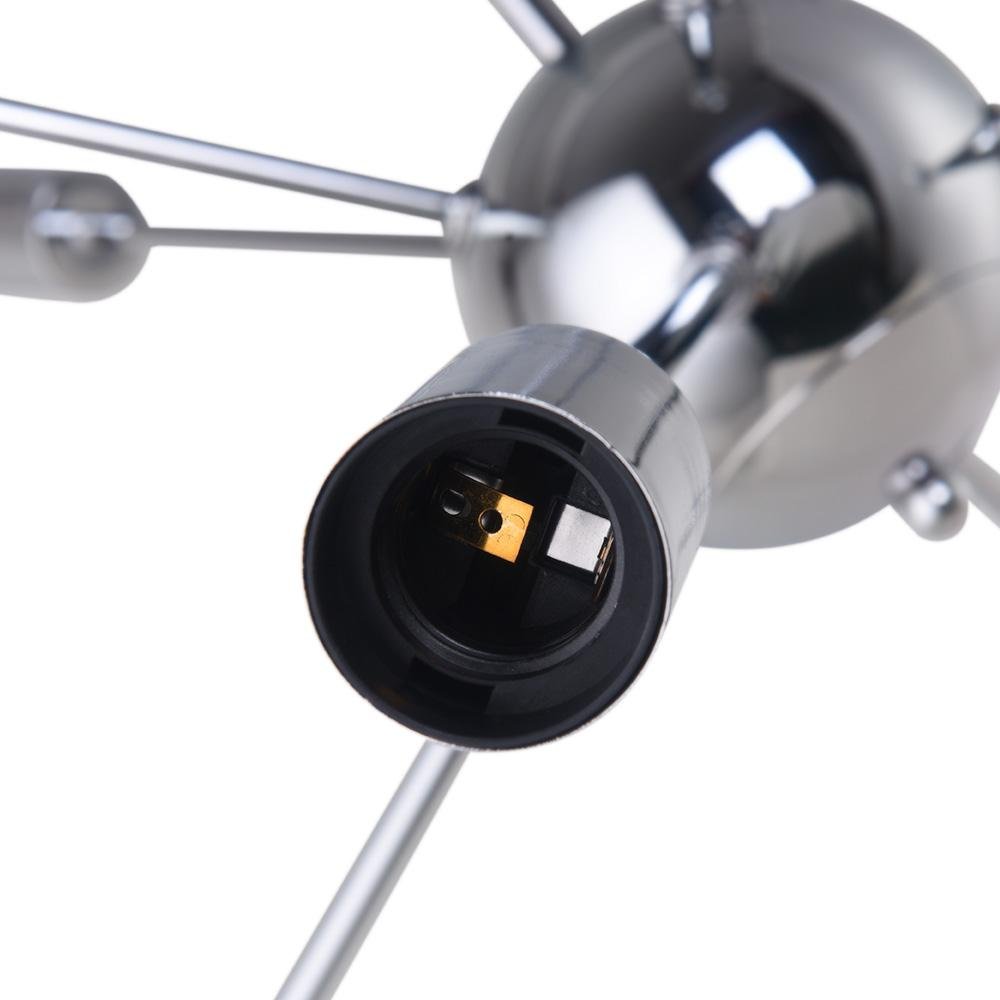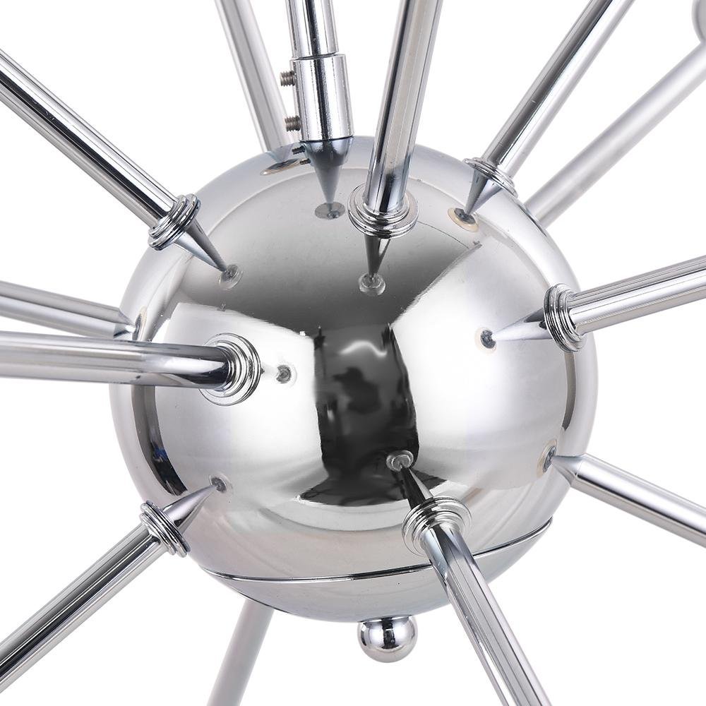 As much a focal point as it is a luminary. this chrome sputnik chandelier brings a warm glow to your space. Crafted from metal. the silver chrome finish completes this modern sphere chandelier into an understated chic flavor. Suspended by a round canopy and a sleek straight rod. a decorative sphere scatters eight or twelve slender arms to all quarters evenly. Accommodating E26/E27 medium-base bulbs(not included) in the terminal part of arms. this silver chandelier casts plenty of lighting to your space. Versatile. the chrome sputnik chandelier is available with a dimmer switch and dimmable bulbs (both not included) to adjust your condition at its finest. Whether high ceiling or low ceiling. this modern silver sphere chandelier always works well thanks to its adjustable rod. Famous for a spectacular sputnik design. this modern silver sphere chandelier will be a brilliant star to lighten up your living room. dining room. bedroom. foyer. and hall.