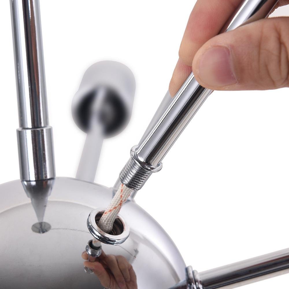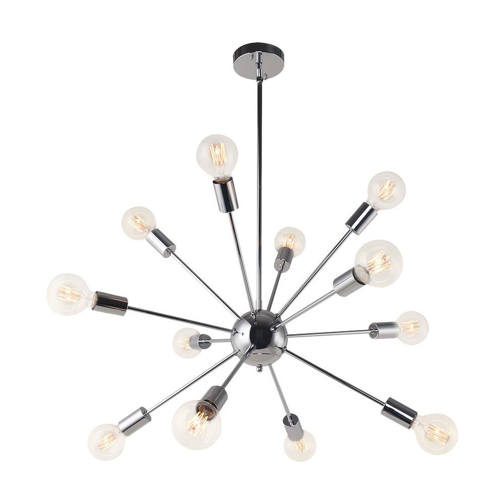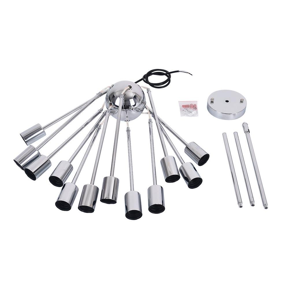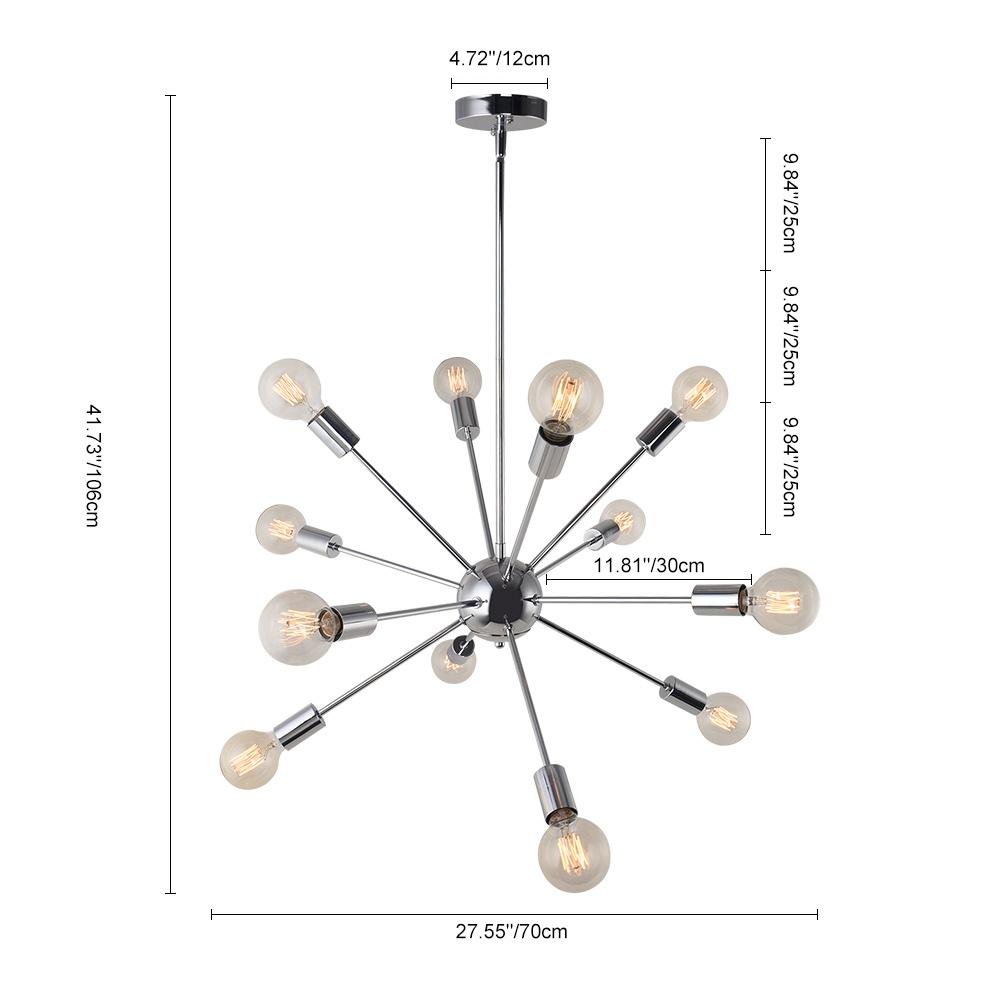 As much a focal point as it is a luminary. this chrome sputnik chandelier brings a warm glow to your space. Crafted from metal. the silver chrome finish completes this modern sphere chandelier into an understated chic flavor. Suspended by a round canopy and a sleek straight rod. a decorative sphere scatters eight or twelve slender arms to all quarters evenly. Accommodating E26/E27 medium-base bulbs(not included) in the terminal part of arms. this silver chandelier casts plenty of lighting to your space. Versatile. the chrome sputnik chandelier is available with a dimmer switch and dimmable bulbs (both not included) to adjust your condition at its finest. Whether high ceiling or low ceiling. this modern silver sphere chandelier always works well thanks to its adjustable rod. Famous for a spectacular sputnik design. this modern silver sphere chandelier will be a brilliant star to lighten up your living room. dining room. bedroom. foyer. and hall.