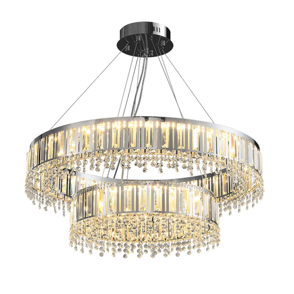 New crystal chandelier light luxury double layer circle crystal lamp Italian hall main light villa stainless steel light