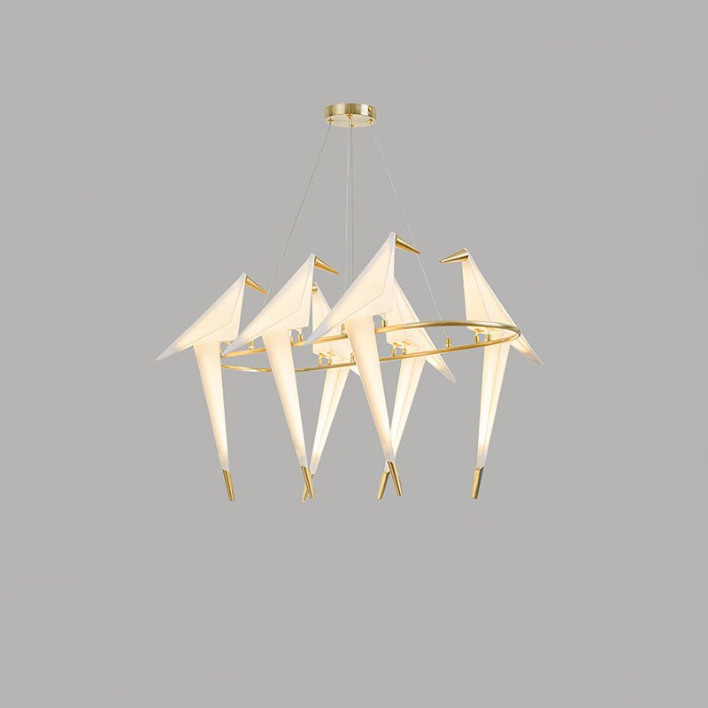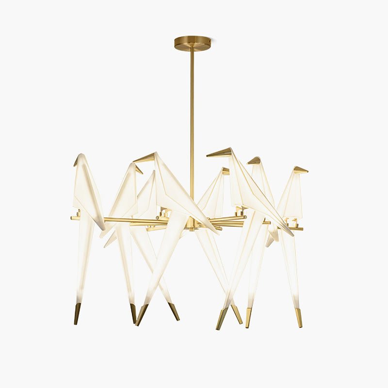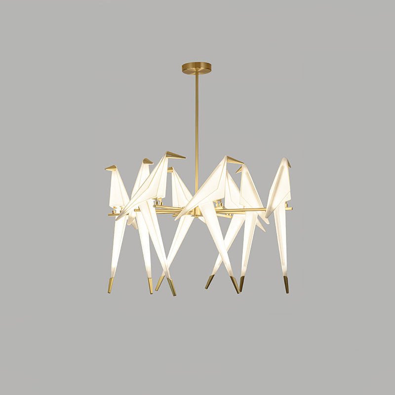 This piece cleverly combines the Oriental paper crane culture with modern lighting design. The lighting can be shaped into a bird s nest or lined up with paper cranes clustered among them. creating a peaceful and peaceful atmosphere. The light falls through the wings of the paper crane. creating gentle and soft light and shadow changes. as if telling an ancient oriental mythology story.