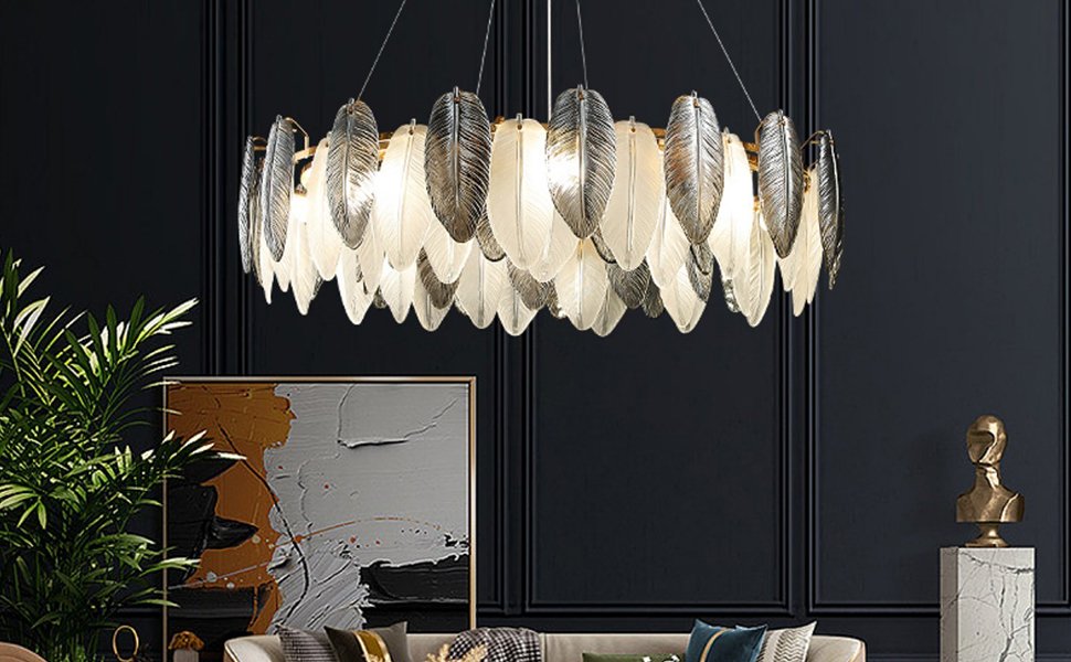 • 【WIDE APPLICATION】This feather glass pearl chain pendant light fixture can lightting your room and provide eye-catching decorations for your living room, dining room, island kitchen, bedroom, dining room, gallery, foyer, corridor and so on.