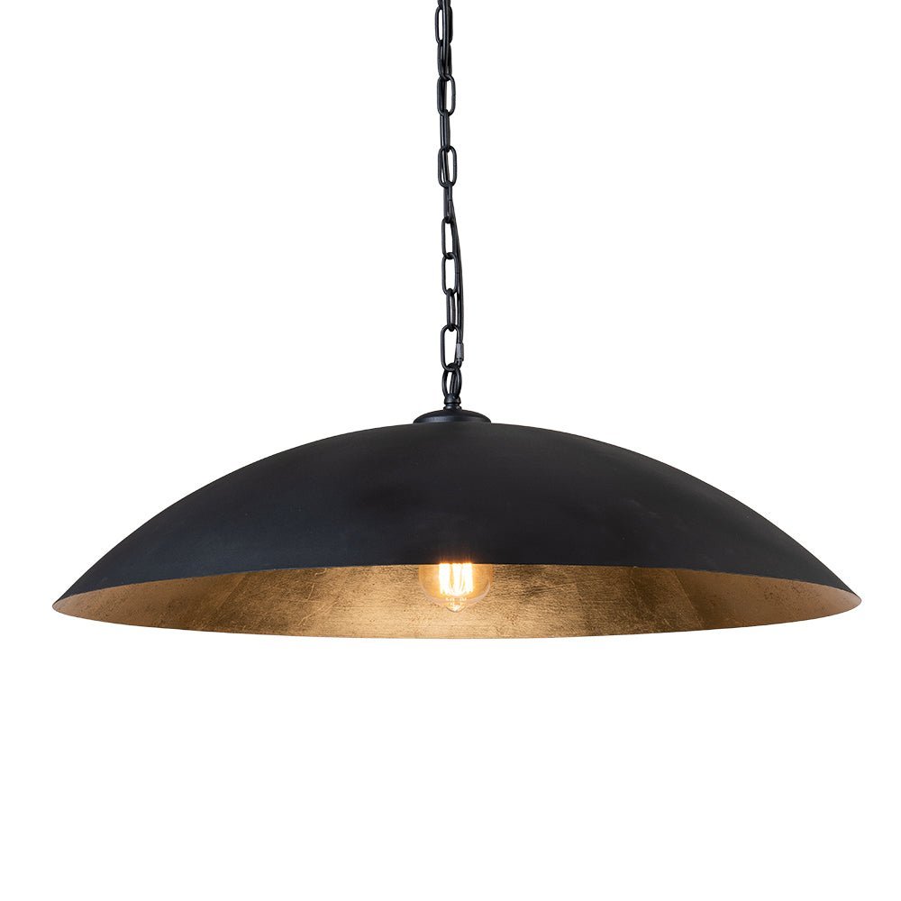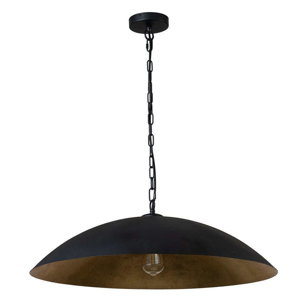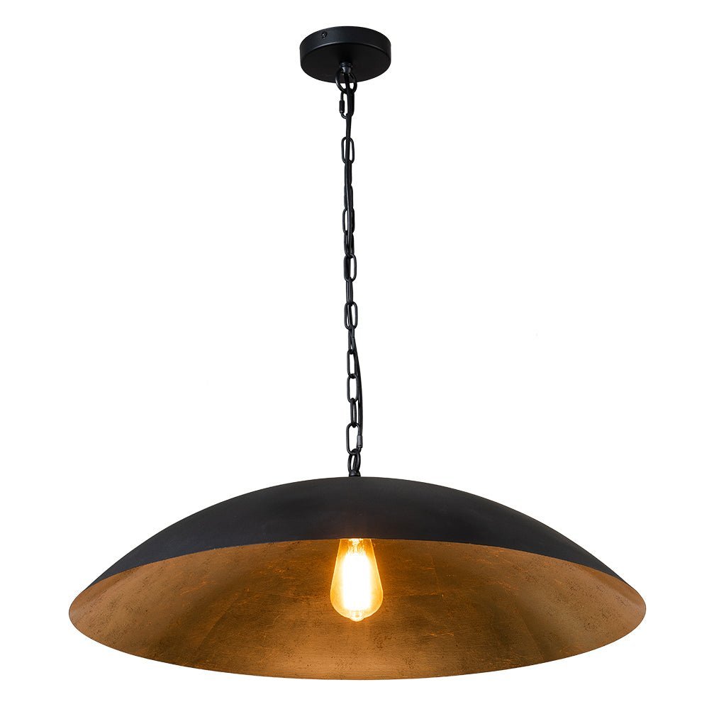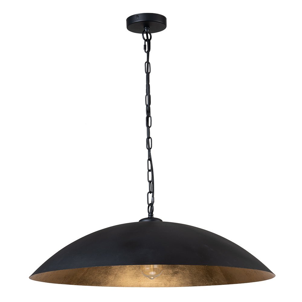 One Light • Oversized Style • Flat Dome Shape • Hanging Chain • Grainy Black + Gold Leaf Painted Finish • E26 Medium-base Bulb (Not Included) • Hardwired • UL Listed